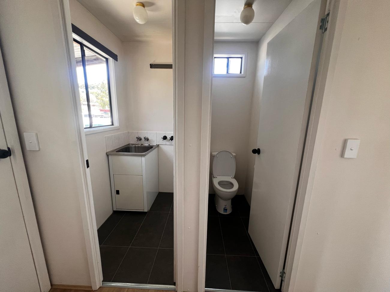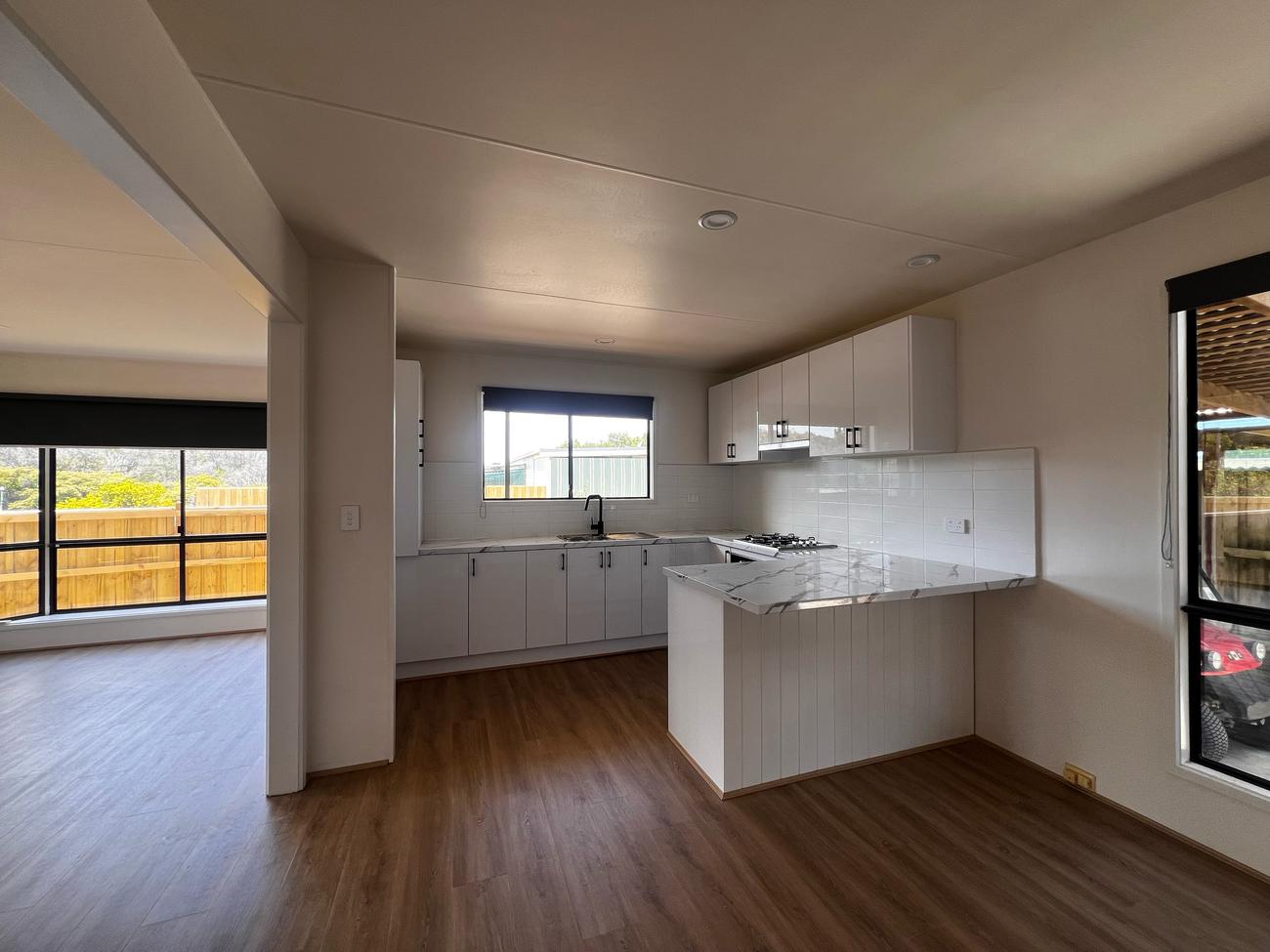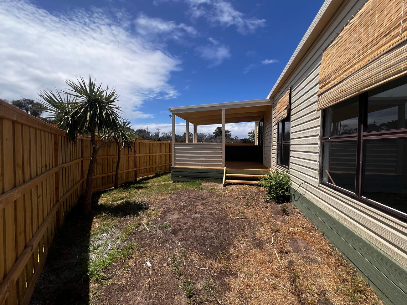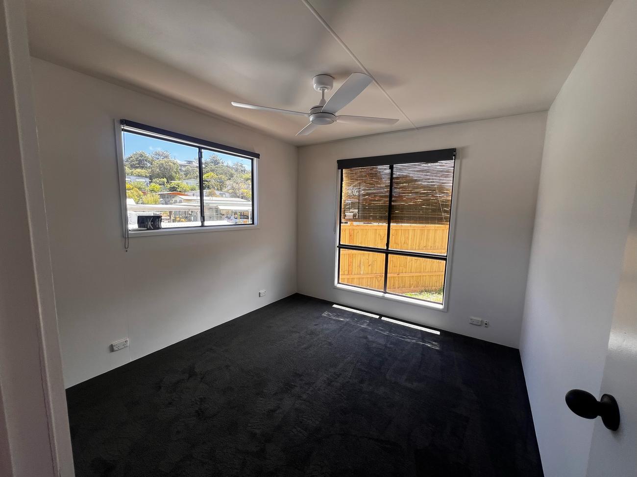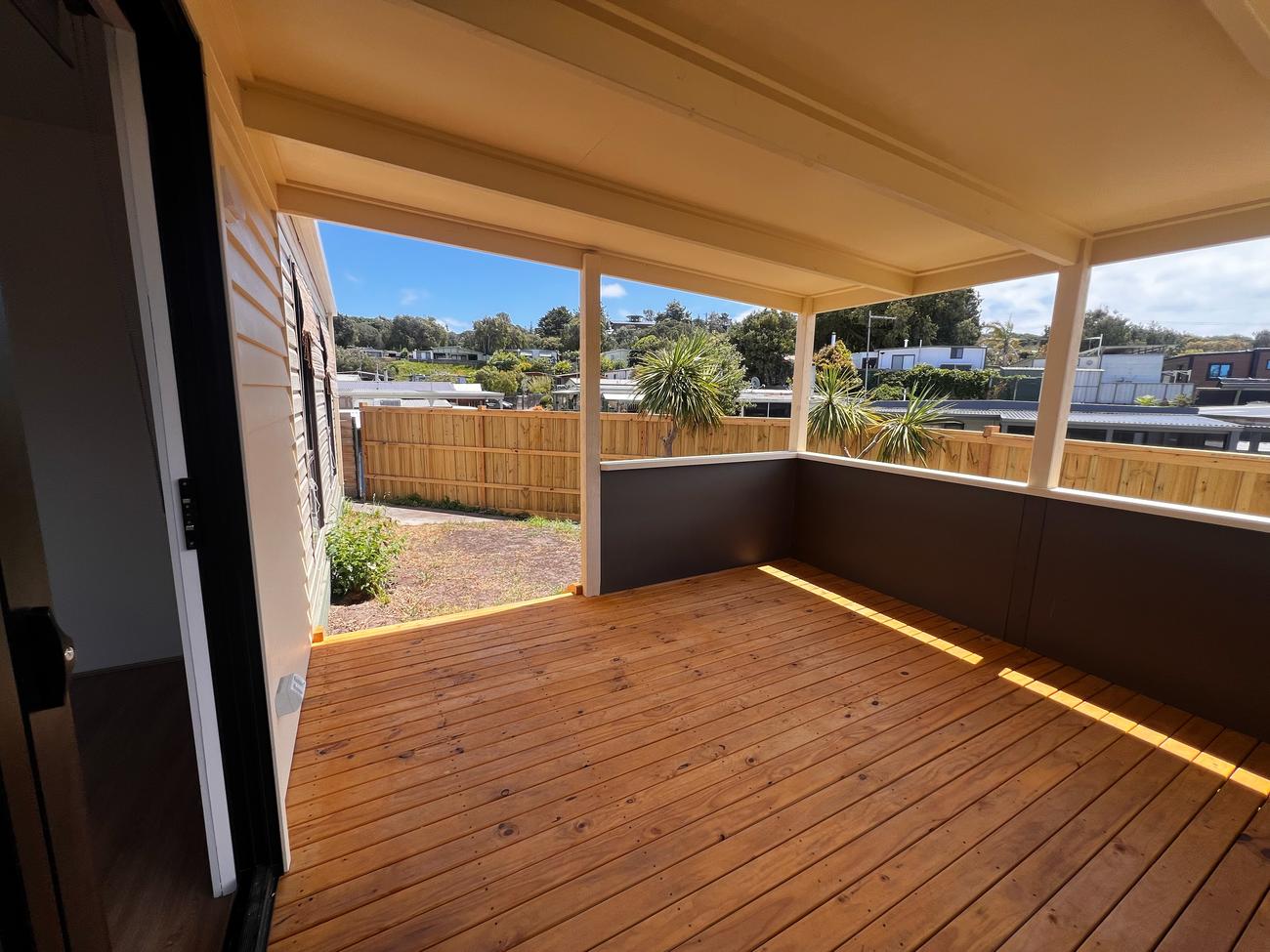 Site 57 is a newly renovated cabin located in the heart of the park. It features all new timber flooring and carpet, blinds, paint and a completely renovated kitchen and bathroom with a stunning new deck and veranda. This cabin also features a car port large enough for two small cars to be parked behind one another as well as a roomy and private backyard and entrance deck. The kitchen and dining are open plan that lead into a hallway with two adjoining rooms, a bathroom with a standard size shower and a separate room for privacy on the toilet as well as a laundry room. This site is perfect for people in need of a larger space for family and friends and is ideal for permanent residents. The location of this site is in the heart of the park however, it still remains private because of the brand new fences.